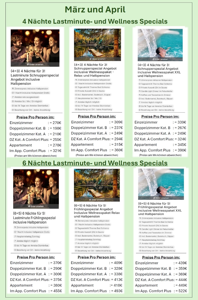 Alle Preise verstehen sich immer incl. Halbpension a la Carte und dem jeweiligen Programm.