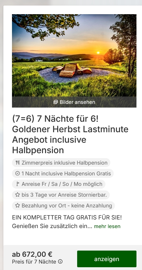und alle Aktionswochen bei einem Aufenthalt von 7 Nächten!